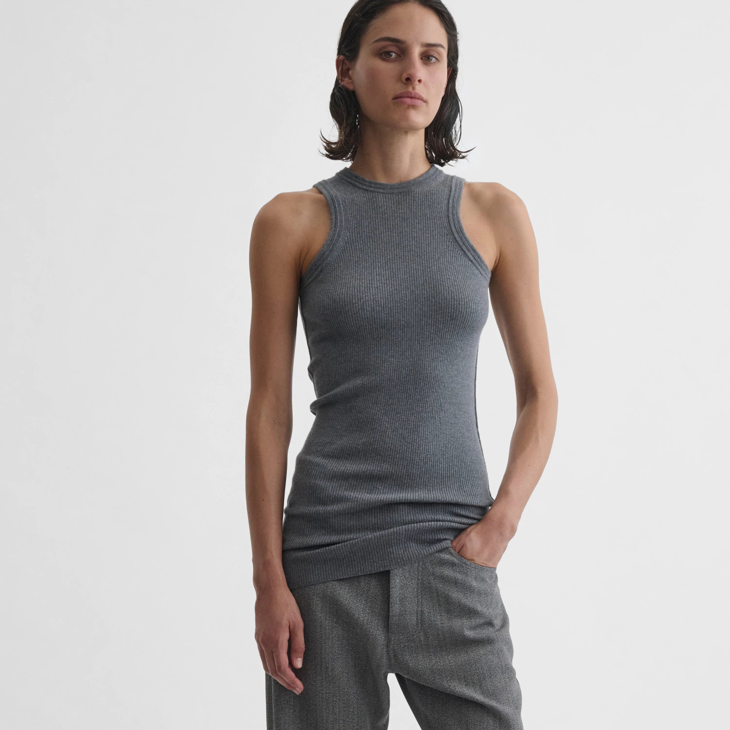 Product Name: Chanel OLD CELINE Phoebe Philo grey ribbed black ribbon cut in shoulder vest S